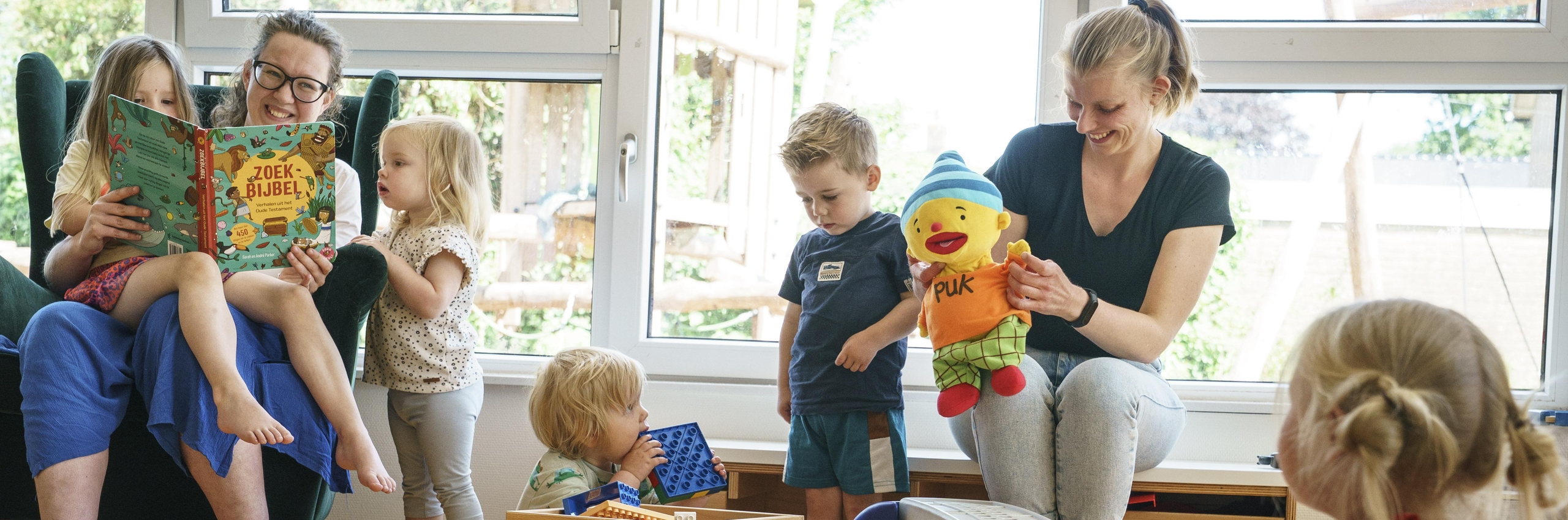 We werken met Uk en Puk, een landelijk ontwikkeld activiteitenprogramma voor baby’s, dreumes en peuters. We organiseren activiteiten op het gebied van natuur, spel, muziek, gym, creatief, koken en meer! We gaan iedere dag naar buiten, lekker spelen, wandelen en de natuur ontdekken. Als de kinderen bijna vier worden en ook op ons kindcentrum naar school gaan, maken we in overleg met de ouders individuele wen-afspraken met de leerkracht van de groep. We werken met een warme overdracht vanuit de opvang naar het onderwijs. Sommige kinderen zijn eraan toe om al wat eerder eens met de kleuters mee te doen, dat kan!
